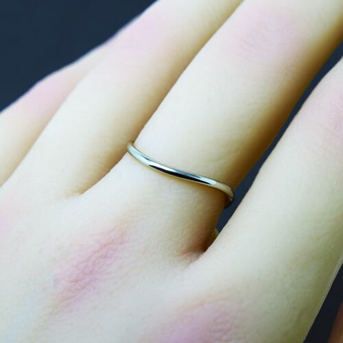 S字カーブ形状の細身でシンプルなリング。"Pure"は純粋さやシンプル、"Circle"は円形を表す丸い形状の指輪です。写真は鏡面仕上げ。