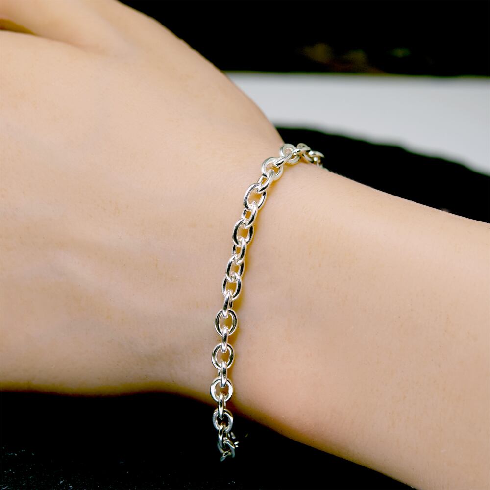 このシルバーチェーンブレスレットは、シンプルなデザインながらしっかりとした存在感を放ち、さまざまなスタイルに溶け込むアイテムです。友人へのプレゼントや、自分へのご褒美としても喜ばれること間違いなしです。ぜひ、この特別なブレスレットをあなたのコレクションに加えてみてください。