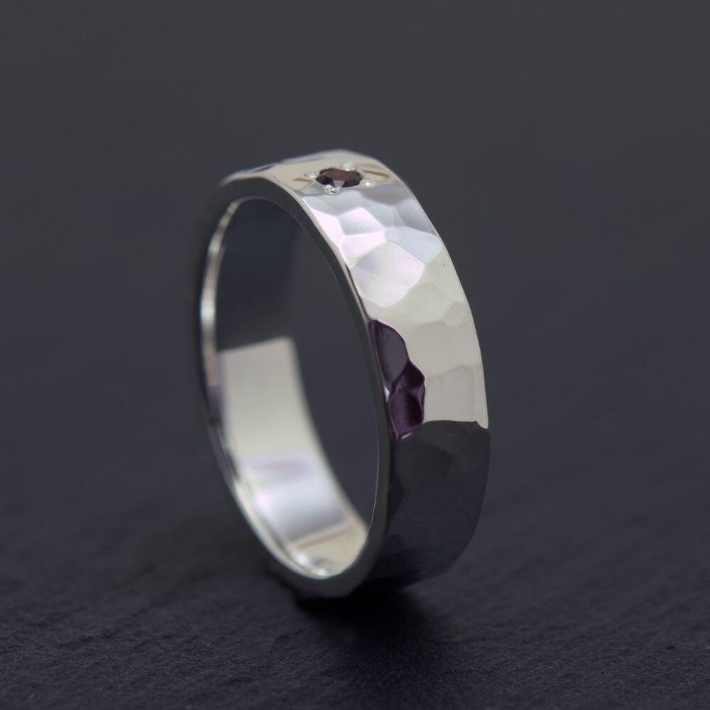 Bump Ring / 5mm 鎚目 × ガーネット / Silver Ring オーダー制作/ 受注製作シルバーリング